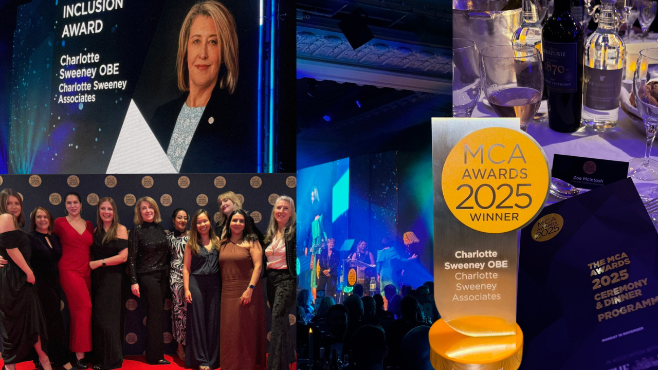 One of the most meaningful moments of the year was Charlotte Sweeney, OBE being named Winner of the Inclusion Award at the Management Consultancies Association (MCA) Awards 2025, alongside being a finalist for The Times Management Consultant of the Year.